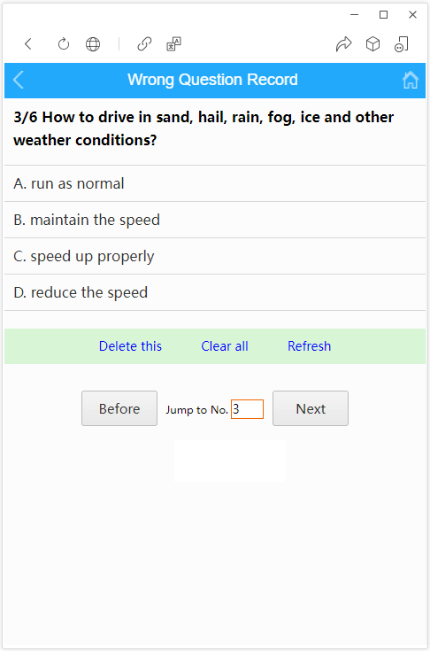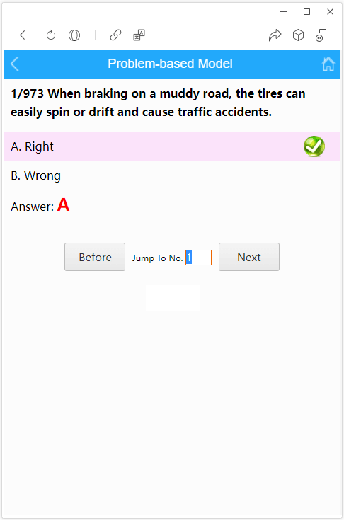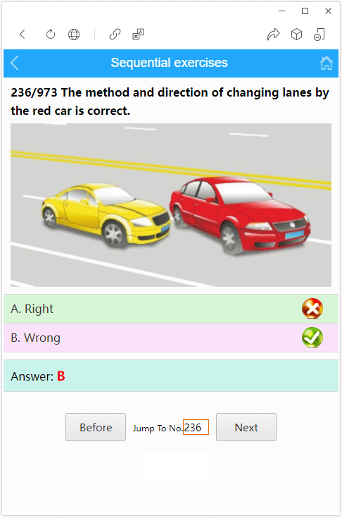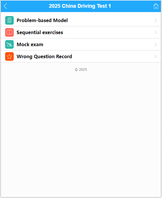 2. Sequential exercises:Display test questions in the order of the question bank, automatically jump to the next question if answered correctly, and display the correct answer if answered incorrectly.