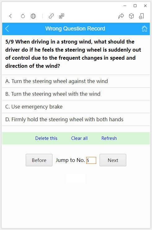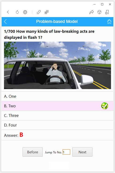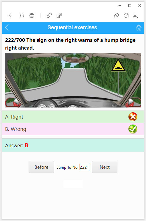 2. Sequential exercises:Display test questions in the order of the question bank, automatically jump to the next question if answered correctly, and display the correct answer if answered incorrectly.