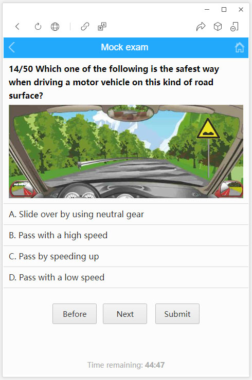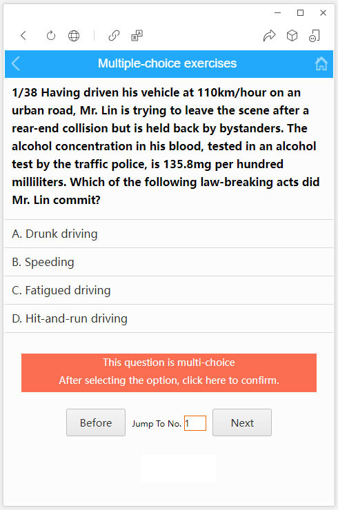 5. Mock exam:Randomly select 50 questions for the exam according to the exam rules. The exam will last for 45 minutes, with 1 point for each question. Candidates who score 90 or above will pass.