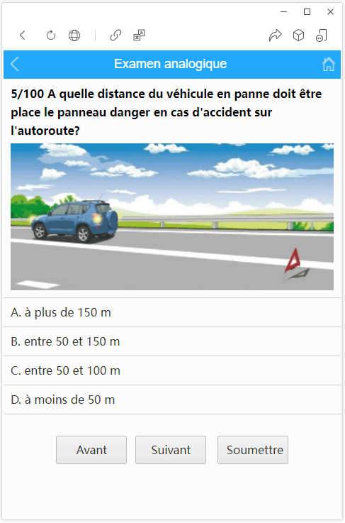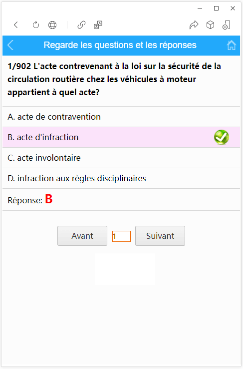 Le logiciel mobile French subject one utilise la dernière version de 902 questions, fournit des exercices de réponse, des tests de simulation, des enregistrements de problèmes erronés et d'autres fonctionnalités qui peuvent aider les français à obtenir un permis de conduire chinois en une seule fois.