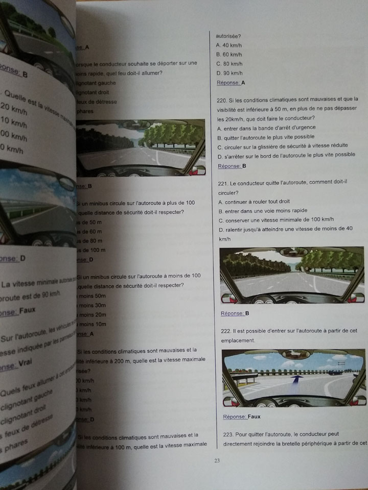 这是法语科目一印刷书本题库截图: