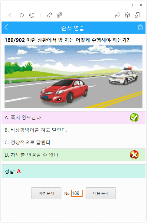 韩语科目一手机版软件采用最新版902题,提供答题练习,模拟测试,错题记录等功能,能帮助韩国人朝鲜族人一次就通过考试取得中国驾照。